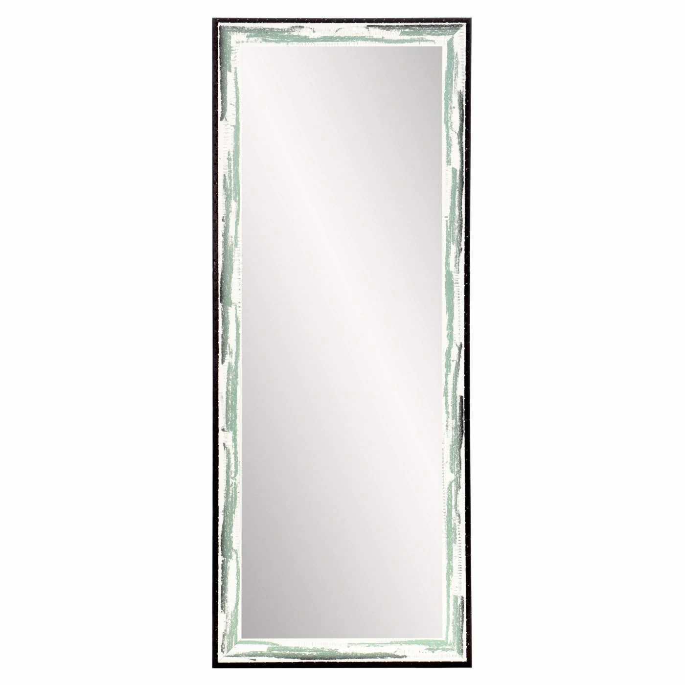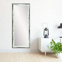 The BrandtWorks Style Function Mintwood Wall Mirror – 25.5W x 70.5H in. is a rectangular, oversized wall mirror that opens up your living space while acting as stylish dΓ©cor. The mirrored glass is surrounded by sturdy engineered wood painted in white with streaks of mint green and gray. The black border grounds the mirror and helps it to match just about any color scheme. Hanging hardware is included for ease of installation. No assembly is required, so you can get right to admiring your outfit of the day.