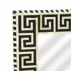 Need some visual impact along your hall or in your living room? The Butler Specialty Eternity Black Bone Inlay Wall Mirror – 36.5W x 58.5H in. is here to help. This rectangular mirror is built from lightweight engineered wood with a blocky frame. The frame comes with an etched Greek key design with a black bone inlay. The mirror is flat and unbeveled.