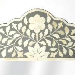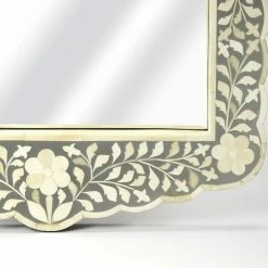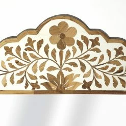 Introduce a gorgeous wall accent to your bedroom or living room with the Butler Specialty Vivienne Inlay Wall Mirror – 20W x 28H in.. This mirror is rendered from mango and teak hardwood with engineered wood supports. Its border features scalloped edges and a molded floral inlay, accented with your choice of available color option. Hanging hardware is not provided.