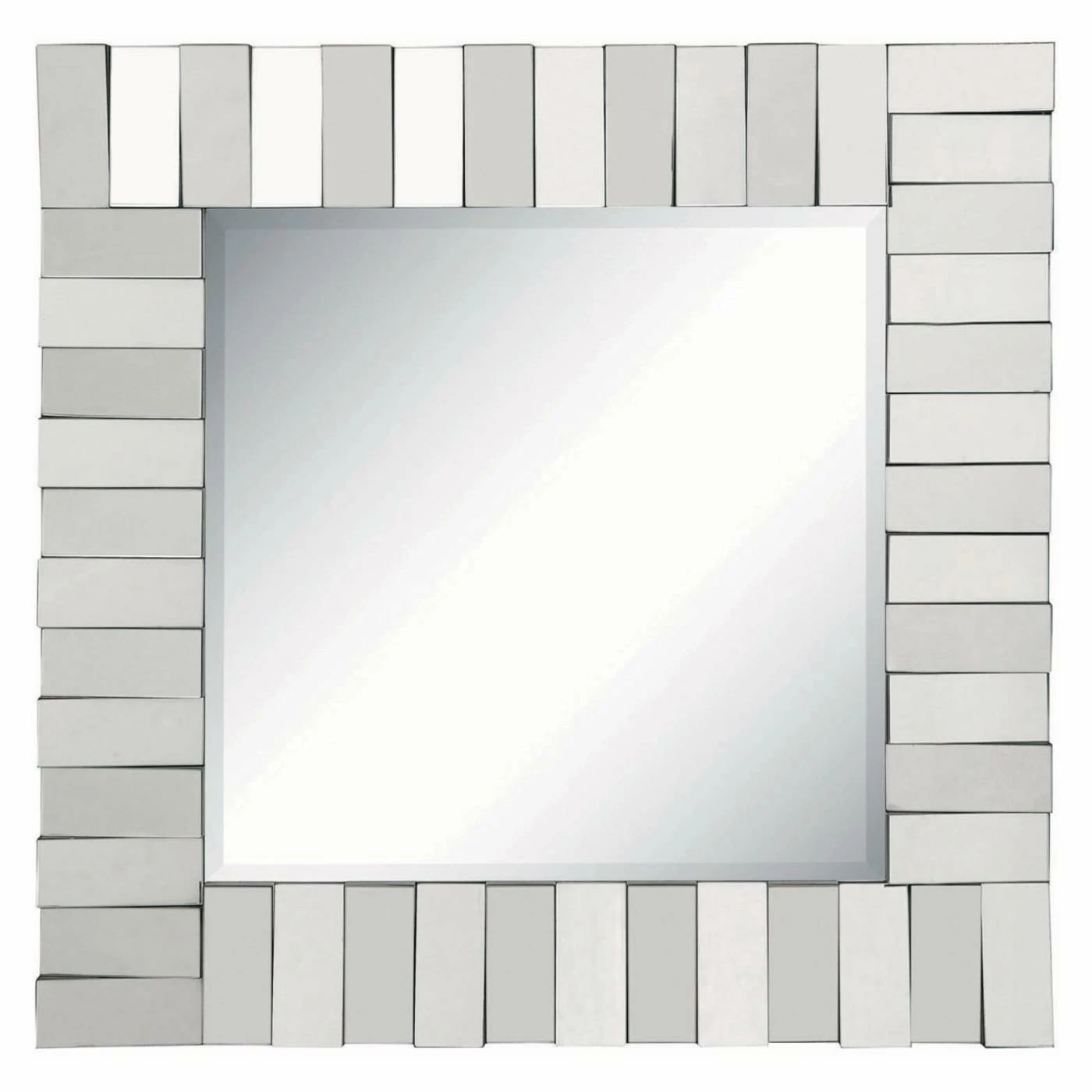The central mirrored panel of the Coaster Furniture Square Wall Mirror – 31.5W x 31.5H in. is framed by smaller mirrored panels that form an eye-catching border to enhance the design. Alternating inward-facing and outward-facing panels create a dimensional and vibrant look that catches the light from all directions. The main panel’s beveled edge enhances the textured look to complete this bold, contemporary piece.