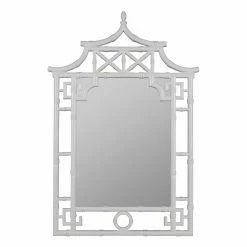 The Asian-influenced Cooper Classics Shing Wall Mirror – 28.5W x 42H in. uses bamboo-shaped lines to create its ancient architectural design. A glossy white finish brings this mirror into the present day. Its oversized beveled mirror within catches light and dazzles.