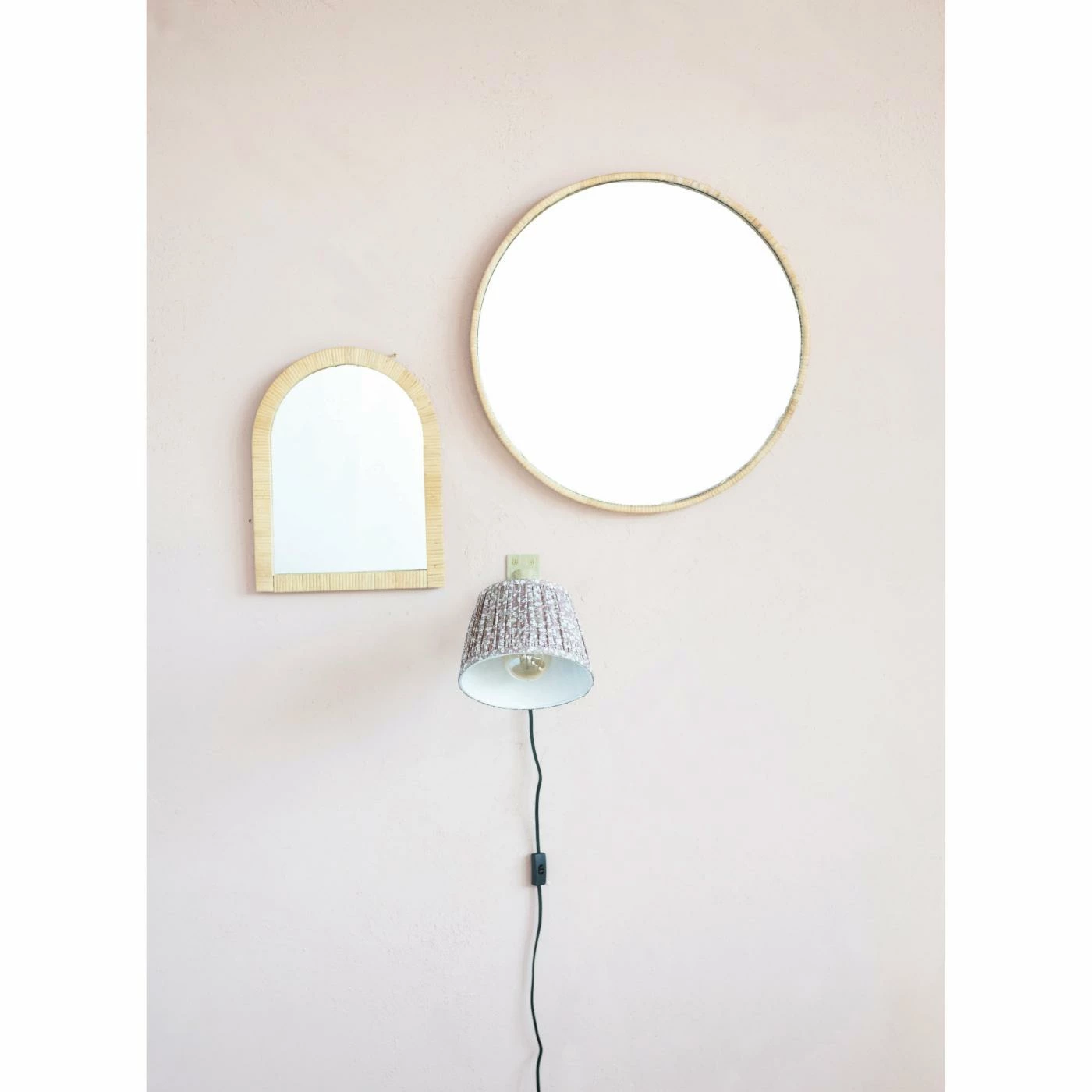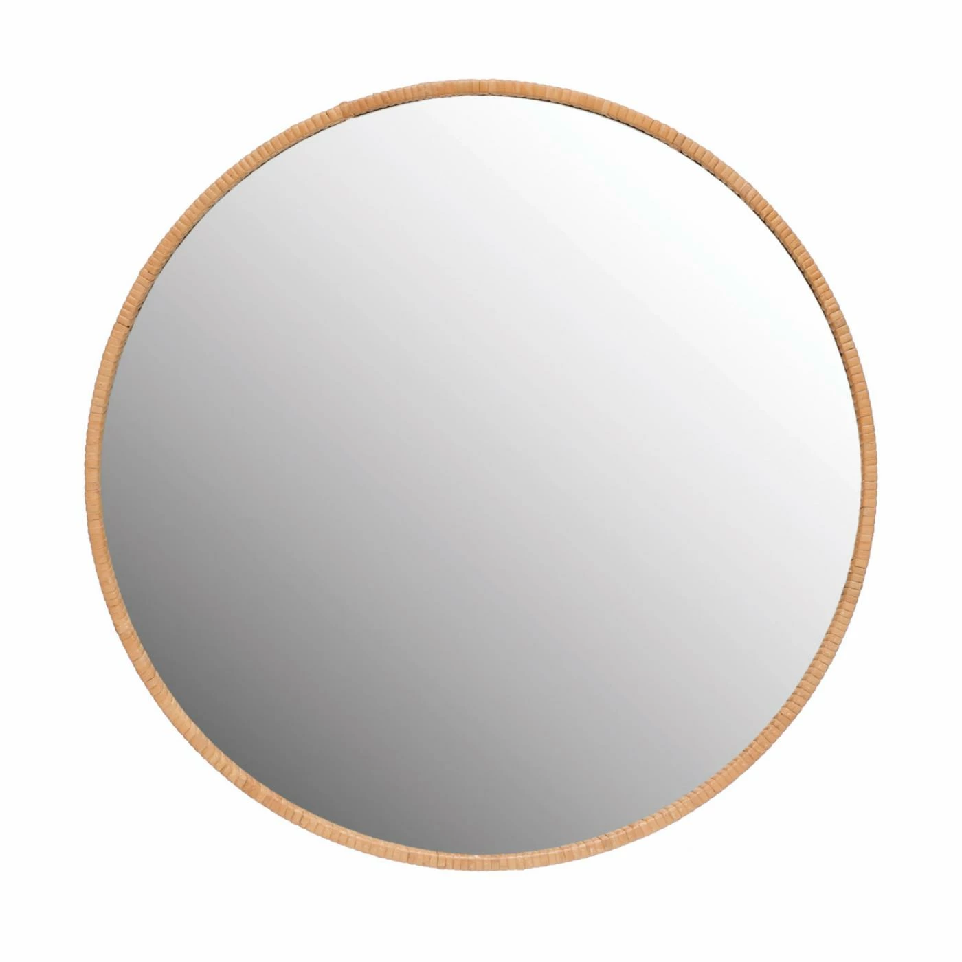 Round wood wall mirror wrapped with natural rattan. Instantly add depth and sophistication to any space with this elegantly designed mirror. Made from glass, fir wood, and sustainable MDF. Instantly add depth and sophistication to any space with this elegantly designed mirror.