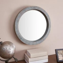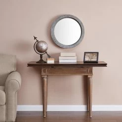 Add a vintage-inspired look to your foyer or living space with the Danya B Round Wall Mirror with Antique Copper Metal Frame. This metal wall mirror features a distinctive gray and bronze/copper finish. It comes in a choice of sizes and will arrive ready with its hanging hardware for your convenience.