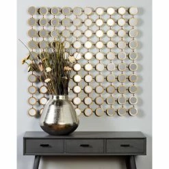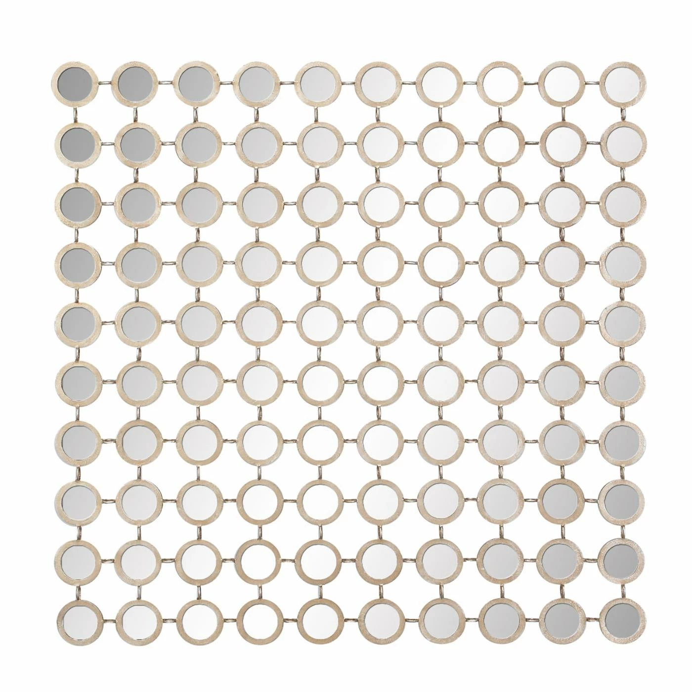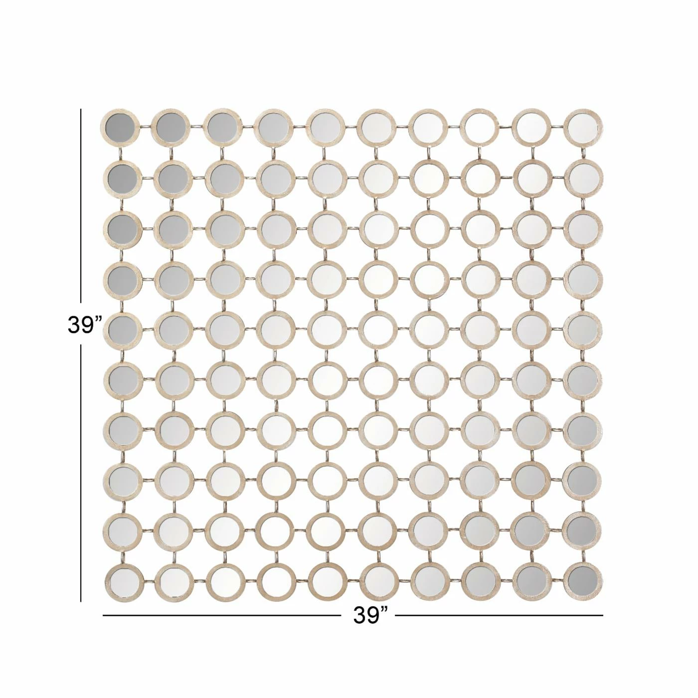 The beauty of this delightfully modern DecMode 39 in. Square Wall Mirror lies in its multiple components. A total of 100 tiny mirrors are linked in a linear fashion with iron frames. The silver and gold finish provides glamorous appeal.
