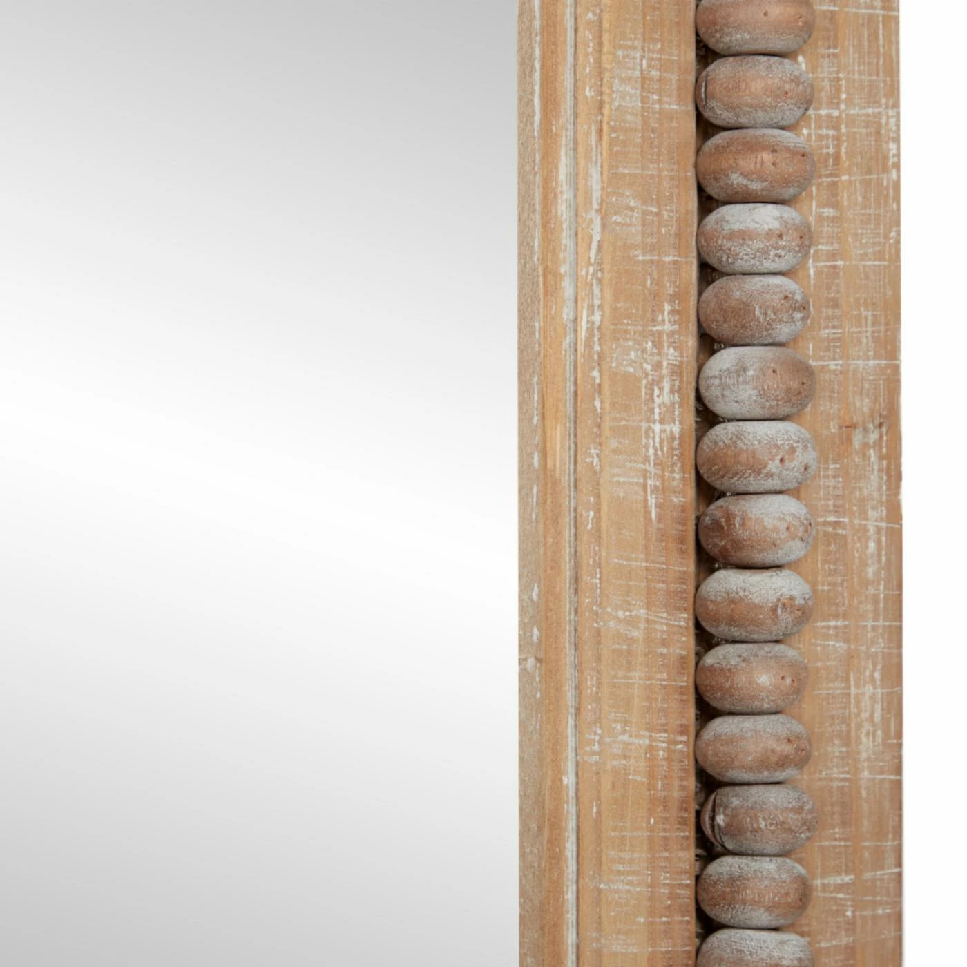 - Features a bead-carved frame