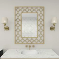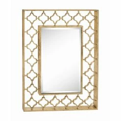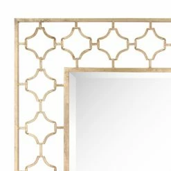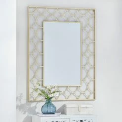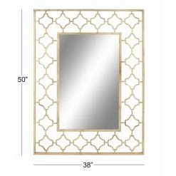 Make your room design pop with the addition of the DecMode Gold Decorative Frame Wall Mirror. This rectangular mirror is an excellent addition to any room’s design. Its frame is made from tough metal with an open border design of inverted quatrefoils. The mirror itself is flat and rectangular to better reflect light. A handsome gold finish completes the piece.