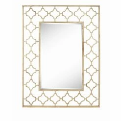 Make your room design pop with the addition of the DecMode Gold Decorative Frame Wall Mirror. This rectangular mirror is an excellent addition to any room’s design. Its frame is made from tough metal with an open border design of inverted quatrefoils. The mirror itself is flat and rectangular to better reflect light. A handsome gold finish completes the piece.