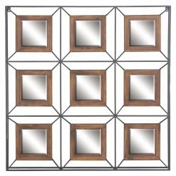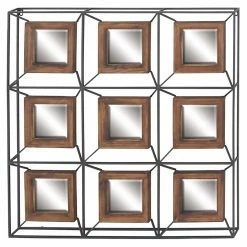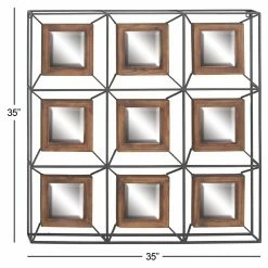 Dress up your wall in rustic style with the DecMode Iron and Fir Wood Grid Wall Mirror – 35W x 35H in. The mirror’s iron wire frame holds nine Chinese fir wood squares, each filled with beveled-edge mirrored glass.