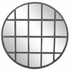 Bring rustic style to your wall with the DecMode Iron and Wood Round Paneled Glass Wall Mirror – 36W x 36H in. The circular iron frame holds 20 mirrored glass panels backed with sturdy wood.