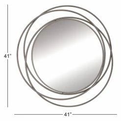 The DecMode Metal Framed Wall Mirror brings extra illumination and a dynamic energy to your room design. A flat round mirror sits at the heart of this design, reflecting lots of available light. The frame is made from tough metal and features three hoops that overlap and interlock in an off-center manner. A gray finish tops the metal.