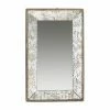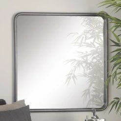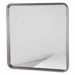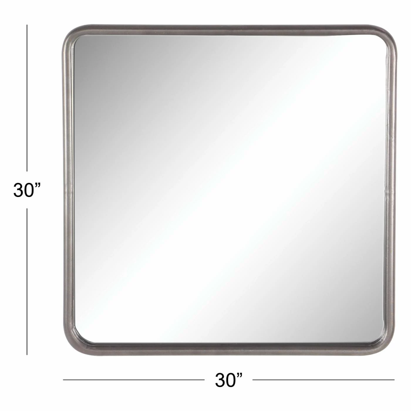 Add the DecMode Modern Rounded Square Wall Mirror – 30W x 30H in. to your bathroom or bedroom for function and style. This mirror features a square glass panel with a square iron frame with curved edges. Its metallic gray finish complements any dΓ©cor. This modern mirror arrives ready to hang and works well in bathrooms and bedrooms.