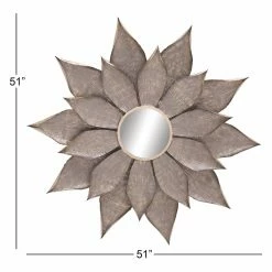 Opt for mod metallics with the DecMode Natural Flower Wall Mirror, perfect for adorning your foyer, living room, or dining area. At more than 4 feet in diameter, this is a statement piece with striated taupe petals and gold-finished accents.