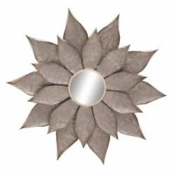Opt for mod metallics with the DecMode Natural Flower Wall Mirror, perfect for adorning your foyer, living room, or dining area. At more than 4 feet in diameter, this is a statement piece with striated taupe petals and gold-finished accents.
