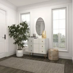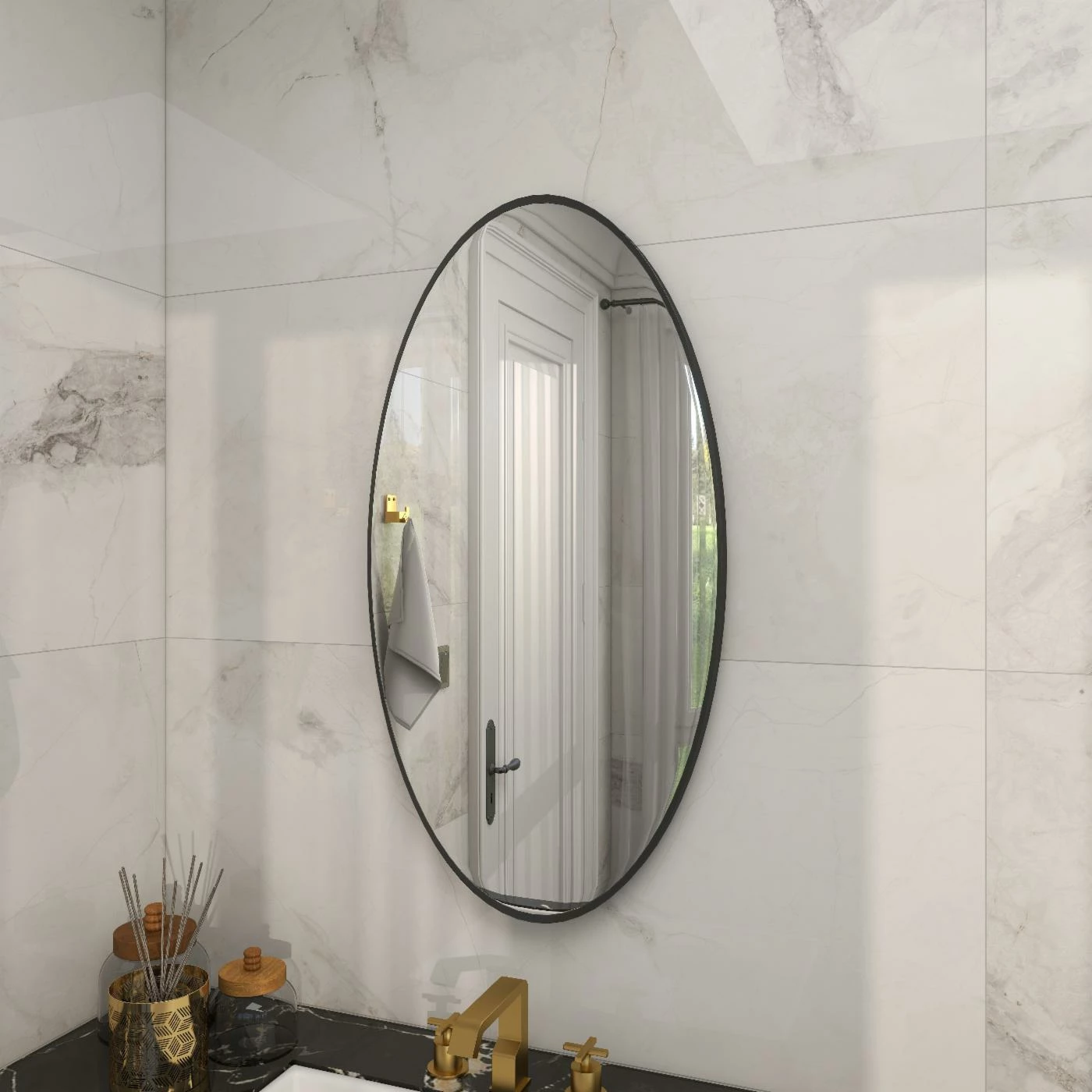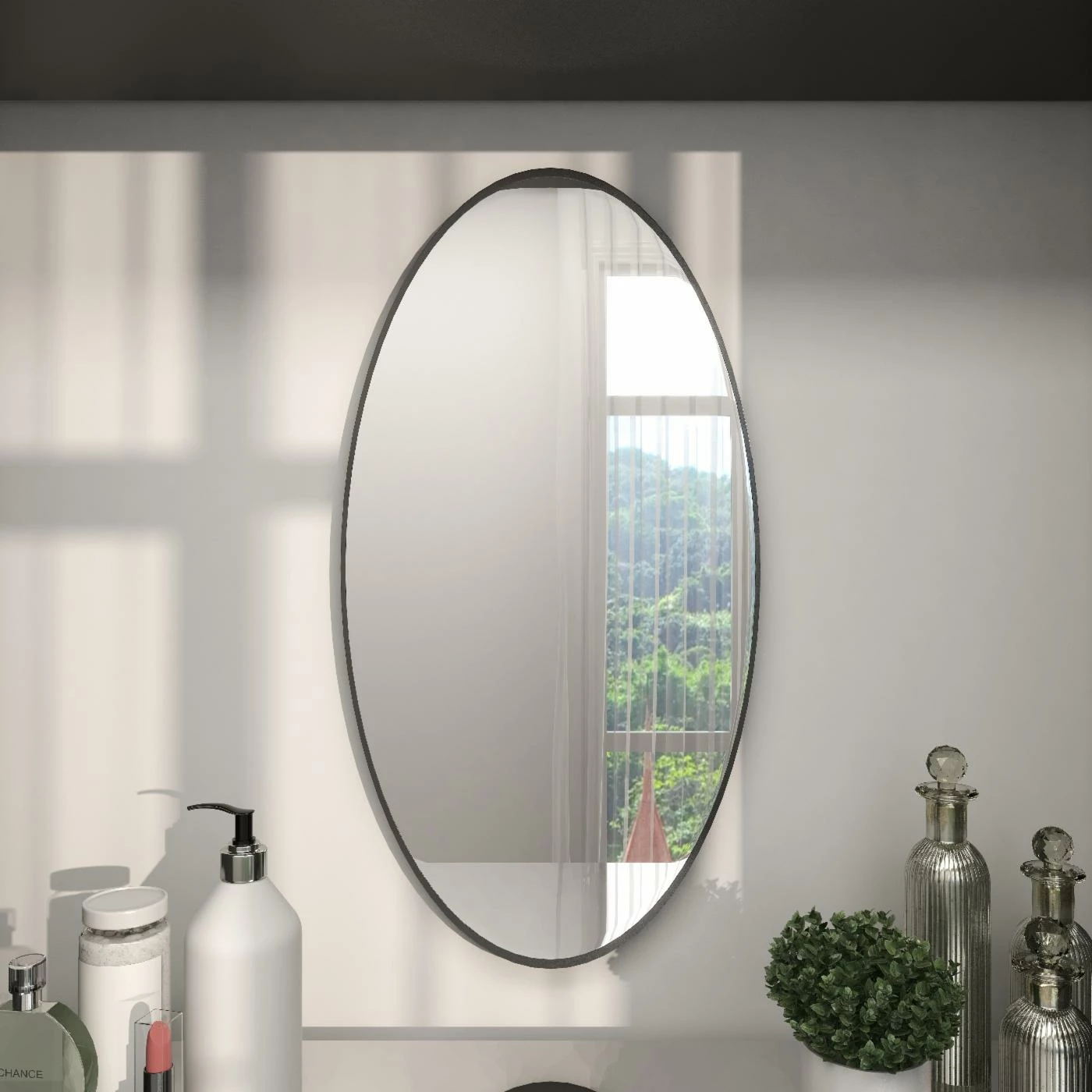 Sometimes simplicity says more than a detailed accent can. The DecMode Oval Wall Mirror is a wide, bold addition to your living room or bedroom, offering a defined shape that also reflects light, helping to add some extra light to your area. The frame of the piece is supported by durable medium-density fiberboard and metal, subtly rimming the flat oval mirror. The frame’s edge comes finished in deep black. Select from available size options.