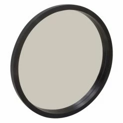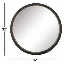 The round shape gives the DecMode Round Framed Wall Mirror – 32 diam. in. a chic, simple profile on your wall. This mirror features an elegantly beveled edge and the frame is crafted from strong engineered wood.