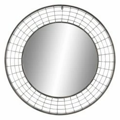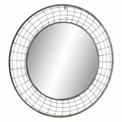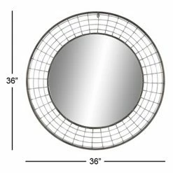 Iron wire weaves a rustic frame for the DecMode Round Wall Mirror – 36 diam. in.. The chic round shape of this mirror looks elegant on your wall.