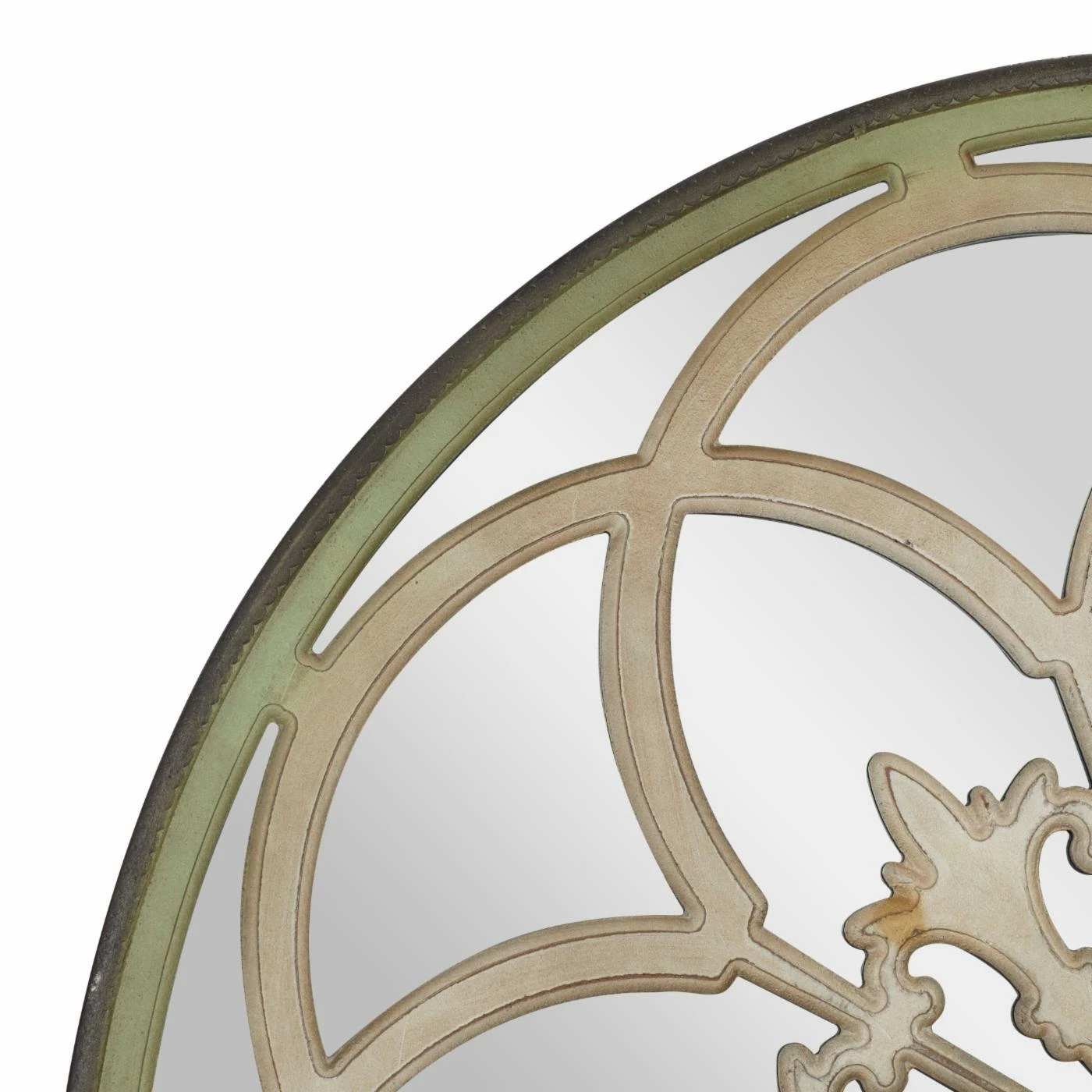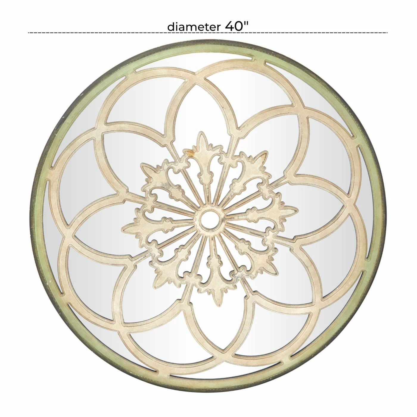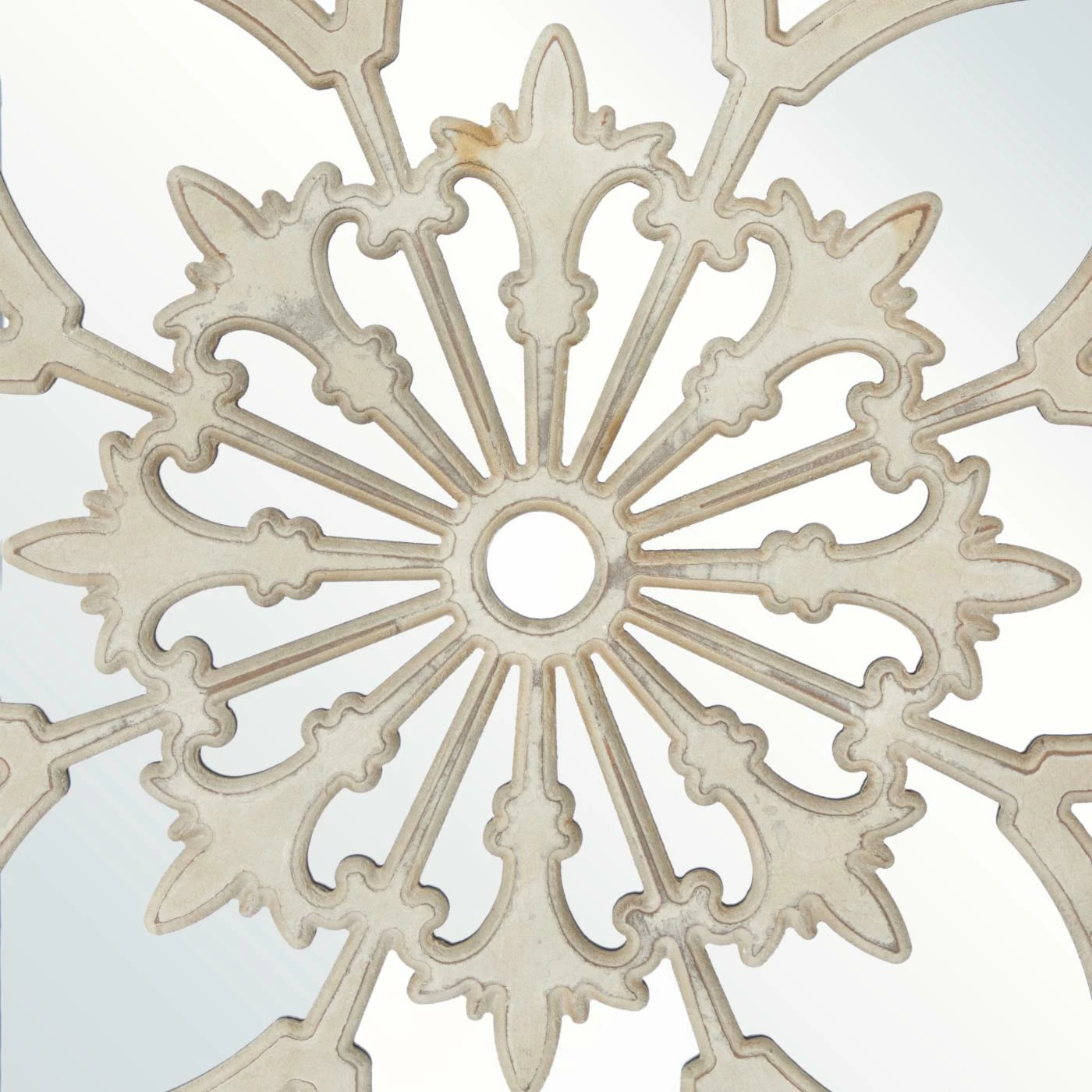 With its ornate medallion overlay and antiqued white finish, the DecMode Traditional Carved Wood Wall Mirror – 40W x 40H in. brings a distinctive French country feel to your home. Pair it with a console table and use to inspire your entryway.