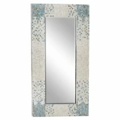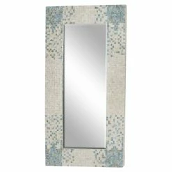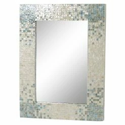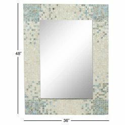 Blue, gray, and ivory mussel shells shimmer and shine in the design of the DecMode Wood and Mussel Shell Inlaid Wall Mirror. The shell inlay is applied to a durable wood base, ensuring that the coastal mirror will stand the test of time. For flexible display options, the mirror is suitable for vertical or horizontal hanging.