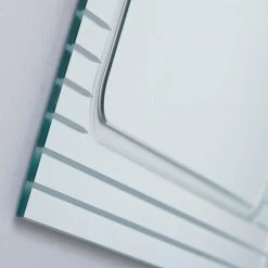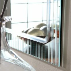Inspired by the Art Deco style, the Frameless Deco Wall Mirror is the perfect piece to breathe life into your home decor. This attractive and sophisticated rectangular mirror is sure to add elegance to any wall in your home. Constructed of metal and strong 3/16 glass, it features V-grooved cut designs around the border that add a unique element to the mirror. Mounting hardware is included with the mirror. Weighs 14 pounds. Dimensions: 31.5L x 23.5W x .5D inches.