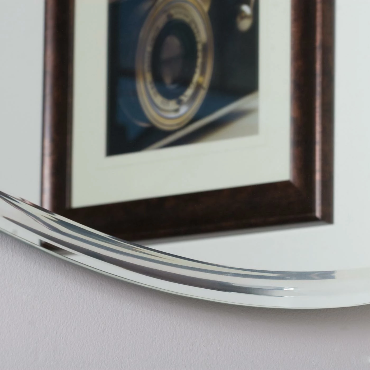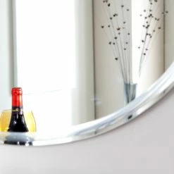 The Frameless Marisol Wall Mirror is just what you need to add depth to a small room. The clean, sophisticated design of this oval mirror is sure to add elegance to any wall in your home. Constructed of strong 3/16 glass, it features a simple framless border. Mounting hardware is included with the mirror. Weighs 18 pounds. Dimensions: 39.5W x .5D x 23.5H inches.