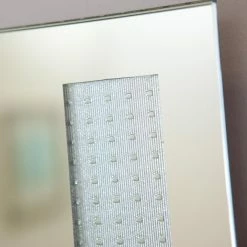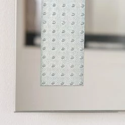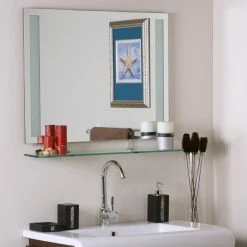 This frameless Roxi Mirror with shelf will be a beautiful addition to your home decor. Perfect for your living room, bedroom, or bathroom, the added shelf at the bottom gives you added display space. The detailing on the edges gives this mirror a modern look which will look great in your home. Constructed of strong 3/16 glass and metal with a durable double coated silver backing with seamed edges, this mirror is made to last. Mounting hardware is included for your convenience.