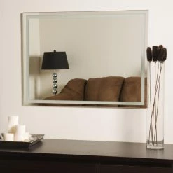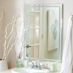 The Frameless Etch Wall Mirror brings a stylish, contemporary design to your home. This attractive and sophisticated rectangular mirror is sure to add elegance to any wall in your home. Constructed of metal and strong 3/16 glass, it features an etched design border created with a fine, precise manufacturing process. Mounting hardware is included with the mirror. Weighs 14 pounds. Dimensions: 31.5L x 23.5W x .5D inches.