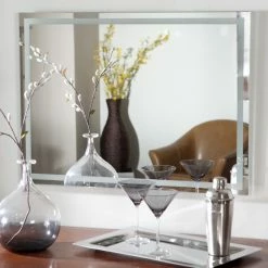 The Frameless Etch Wall Mirror brings a stylish, contemporary design to your home. This attractive and sophisticated rectangular mirror is sure to add elegance to any wall in your home. Constructed of metal and strong 3/16 glass, it features an etched design border created with a fine, precise manufacturing process. Mounting hardware is included with the mirror. Weighs 14 pounds. Dimensions: 31.5L x 23.5W x .5D inches.