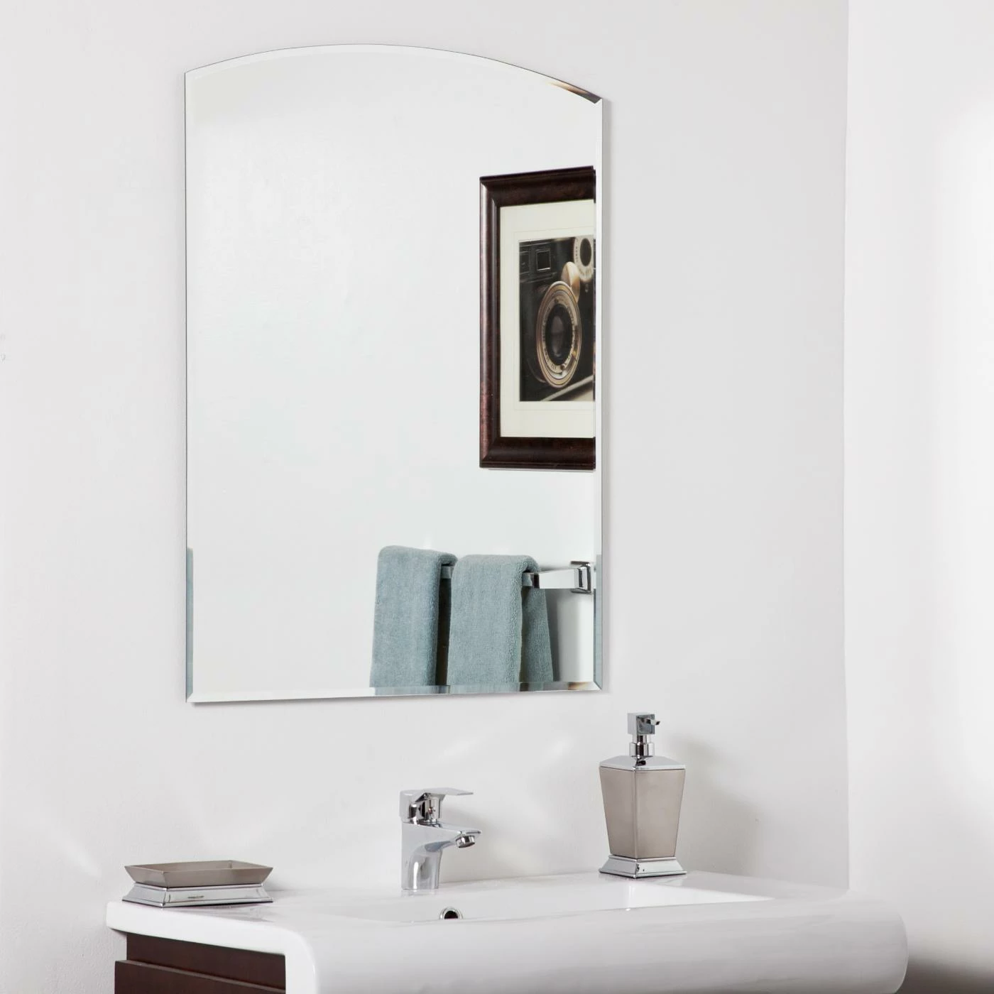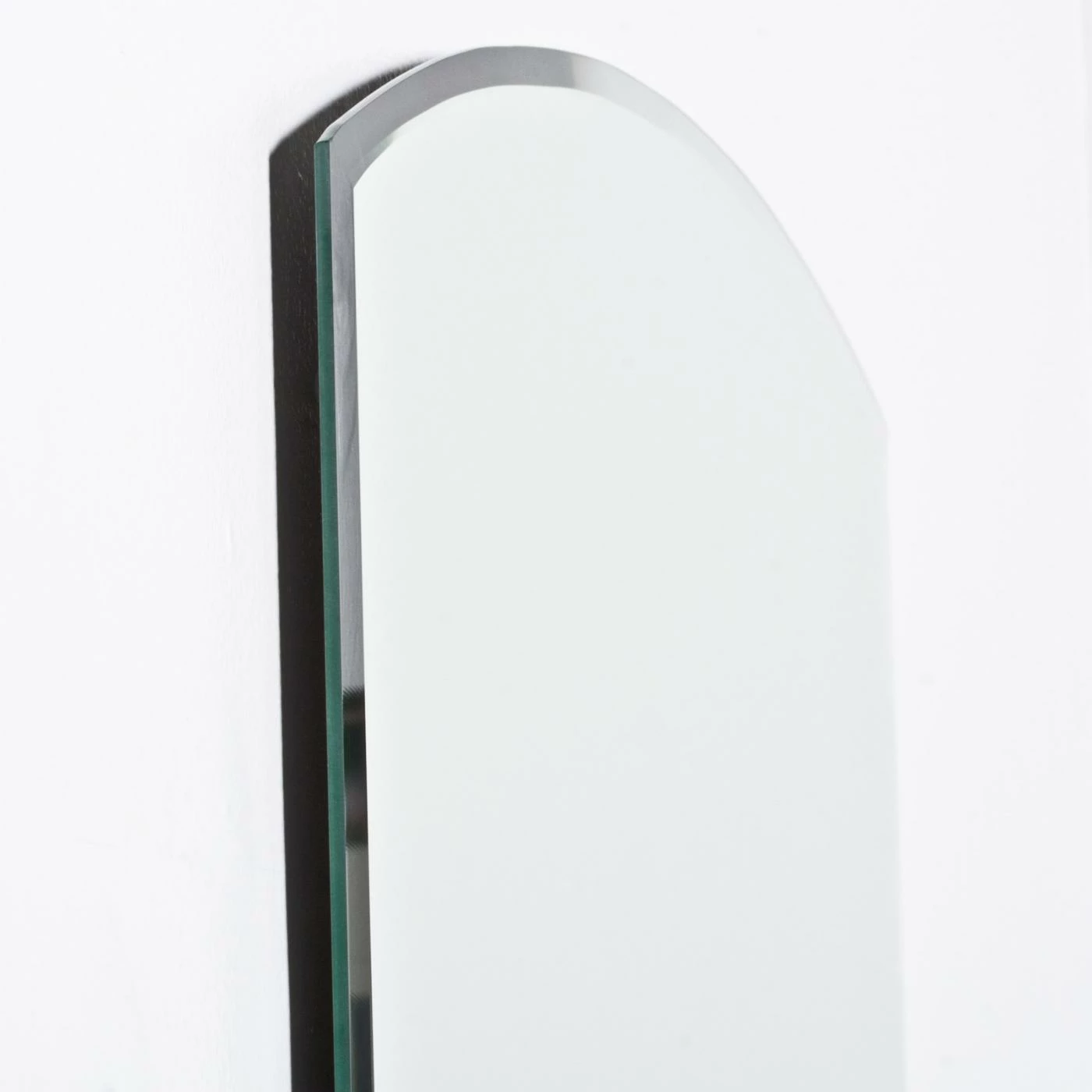 - Rectangular frameless wall mirror with arched top
