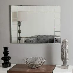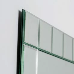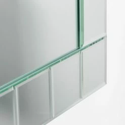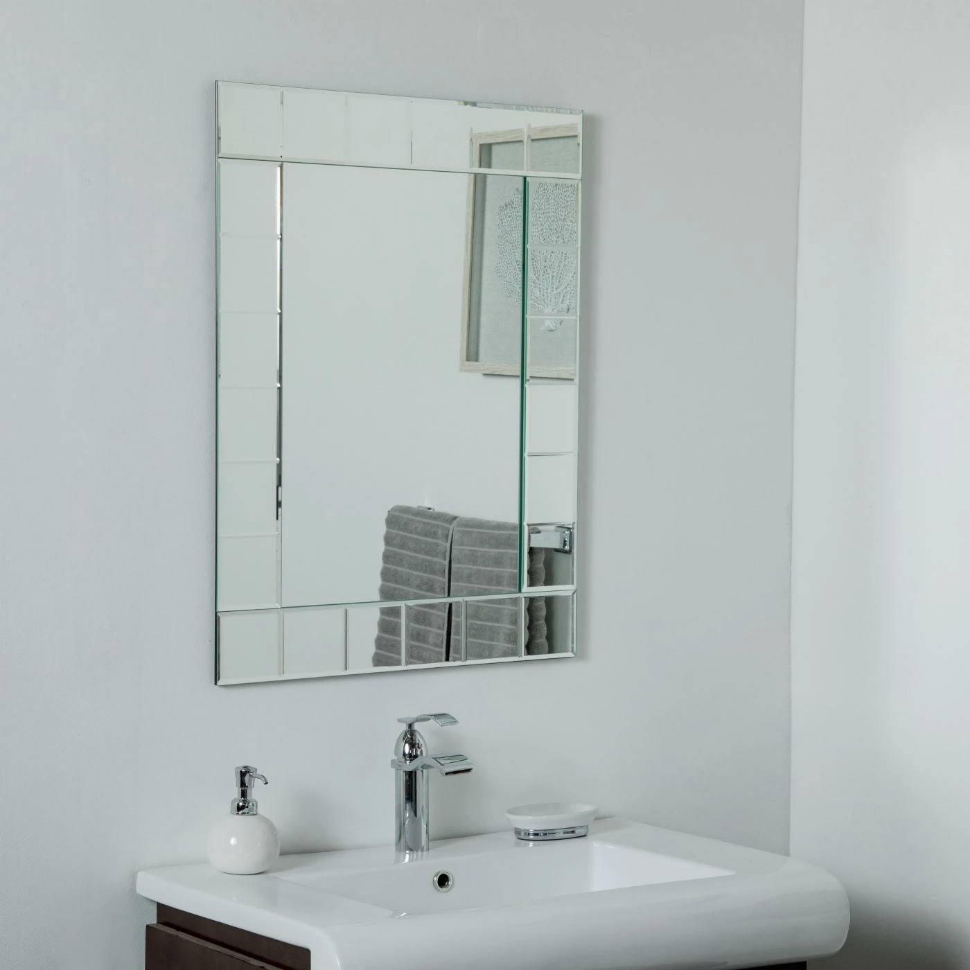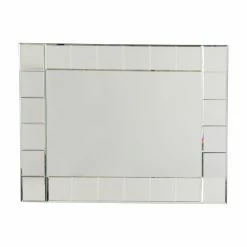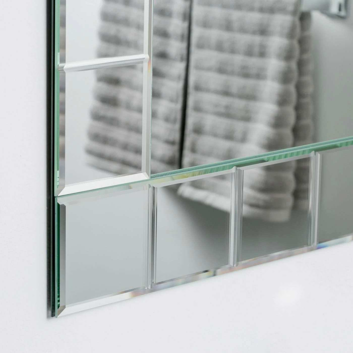 A square mirrored border with V-groove and beveling details allows the Decor Wonderland Lalo Large Frameless Wall Mirror – 23.6W x 31.5H in. to be a fetching blend of modern and art deco elements. Its robust silver mirror construction is outfitted with mounting hardware to ensure an effortless installation.
