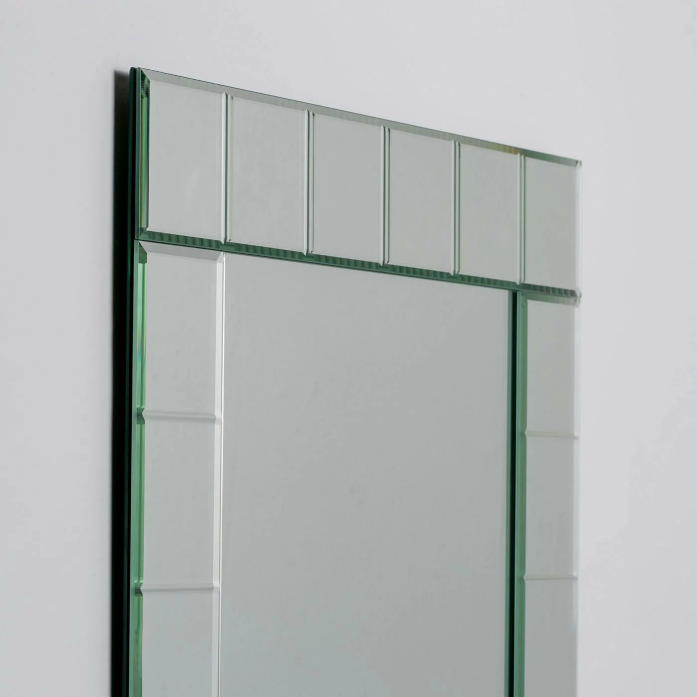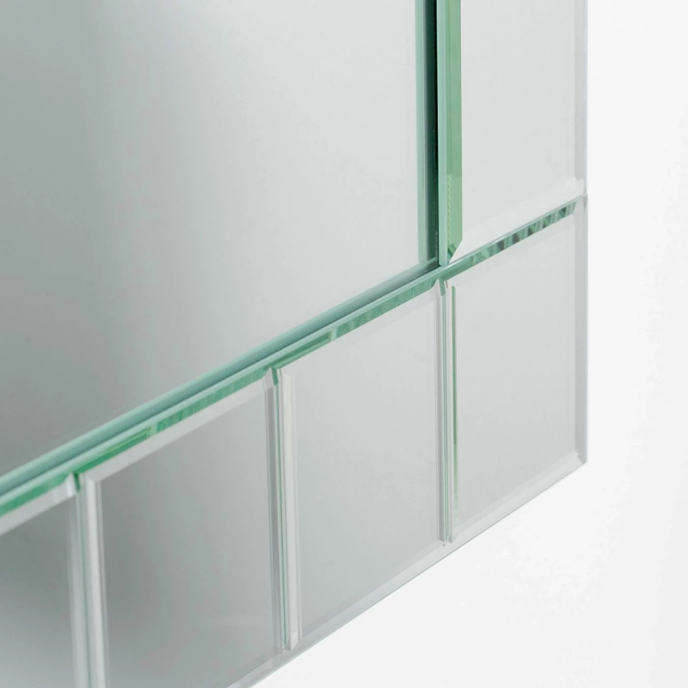 - Center mirror is framed with 4 in. square mirrors with V-groove and beveling details