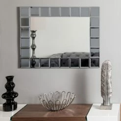 With its square mirrored border in a contrasting gray hue, the Decor Wonderland SilverLake Large Frameless Wall Mirror – 23.6W x 31.5H in. is a chic accent in any space. Its robust silver mirror construction is outfitted with mounting hardware to ensure an effortless installation.