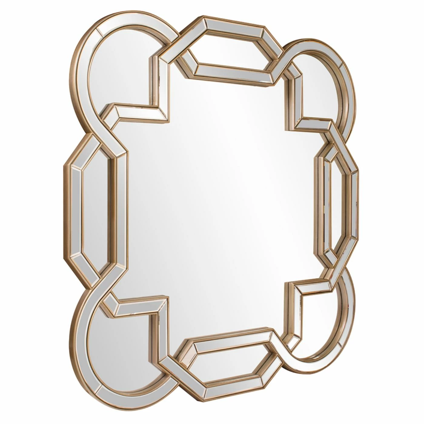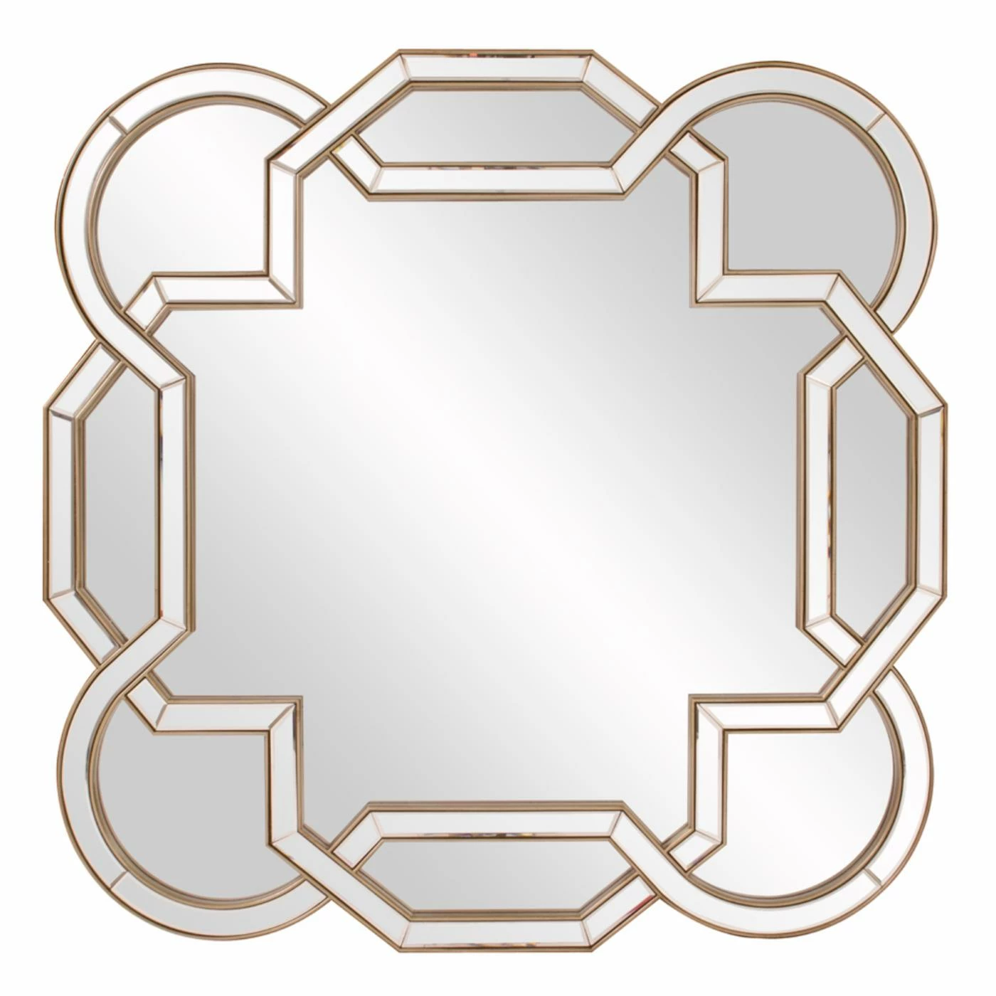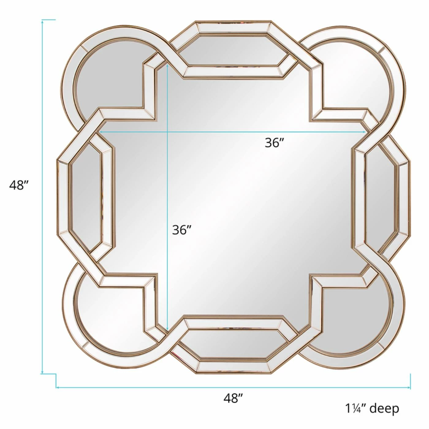 A reflective work of art, the Elizabeth Austin Aleena Wall Mirror – 48W x 48H in. adds focal-point beauty and style to your space. This intricately crafted mirror features intertwining mirrored pieces that wind around elegant shapes. Trimmed in champagne silver leaf for added shine, this gorgeous piece enhances any room in your home. Installation is quick and easy with the D-rings affixed to the back of the mirror.