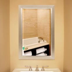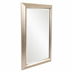 The Elizabeth Austin Avery Wall Mirror – 28W x 42H in. highlights your hallway beautifully. This wall mirror showcases a champagne silver leaf finish with brushed texture. It can be hung vertically or horizontally.
