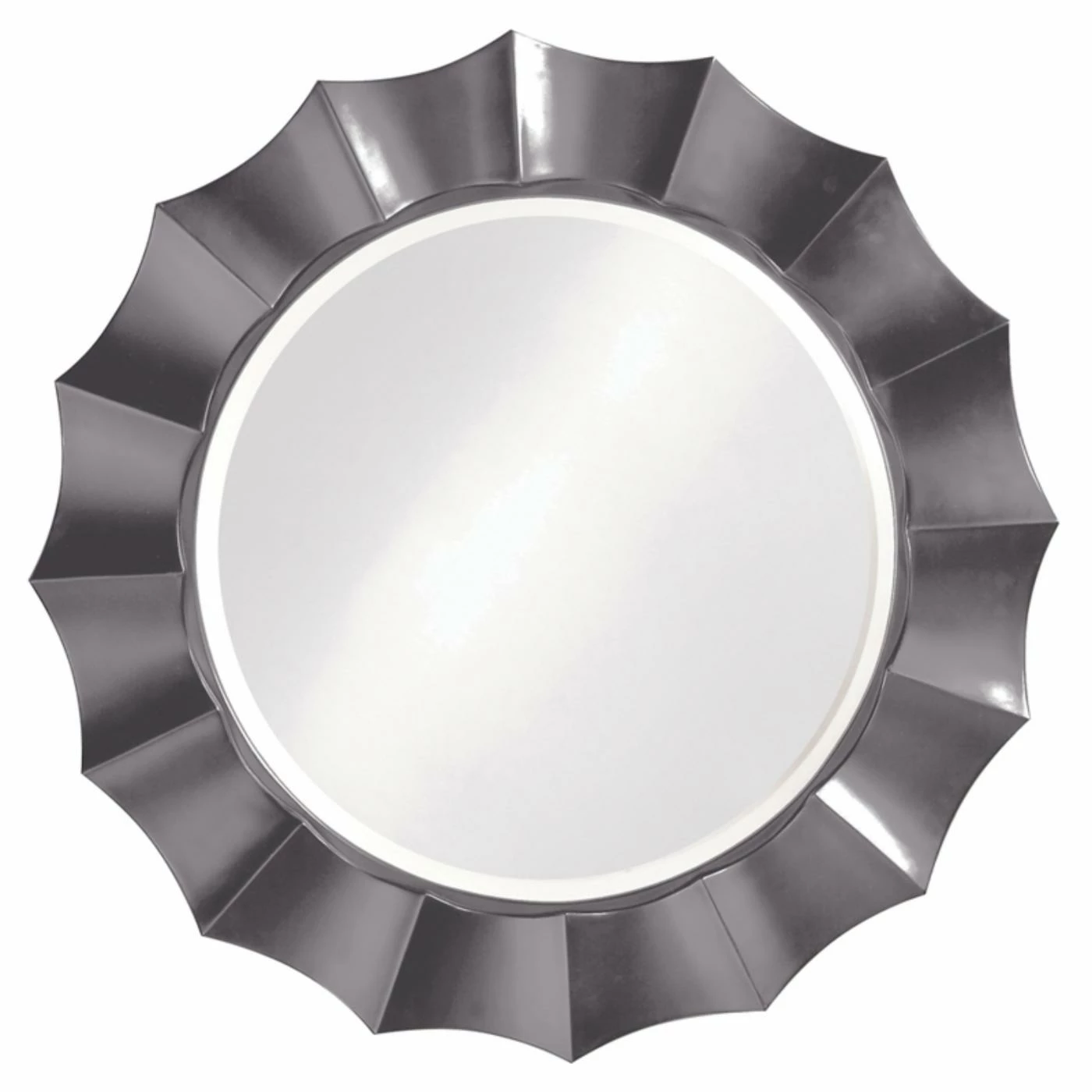 A 3-D beauty, the Elizabeth Austin Corona Wall Mirror – 41 diam. in. features a scalloped, waved frame that comes in a wide range of bold finish options. The circular mirror within has a generous beveled edge. Oversized to make a designer impact on any wall.