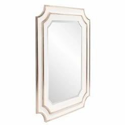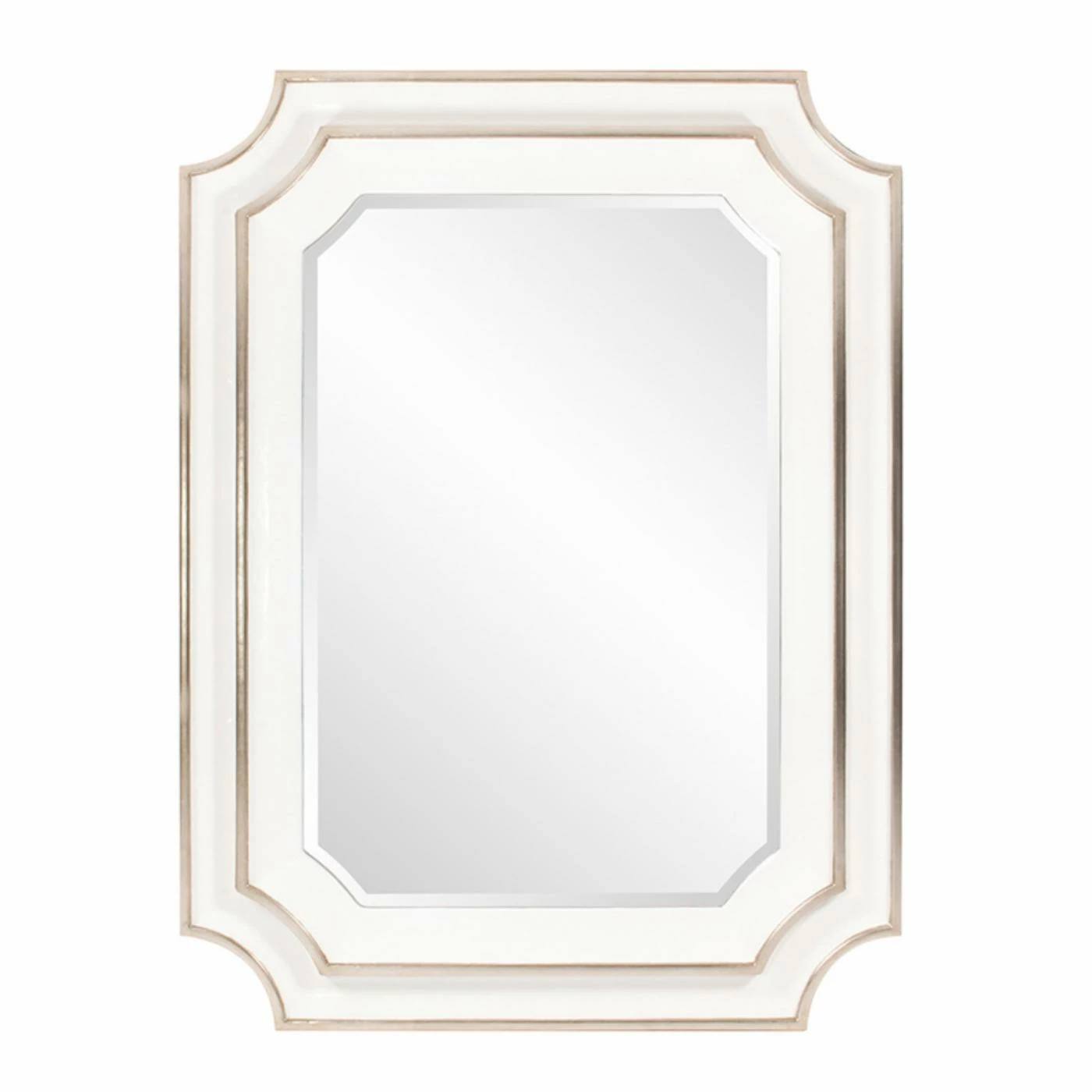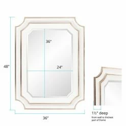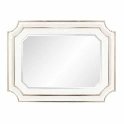 Layers of dazzling mirror make the Elizabeth Austin Dante Wall Mirror – 36W x 48H in. an instant way to add depth, dimension, and elegance into your living space. This wall mirror features beveled edges, notched corners, and a gloss white finish with silver leaf trim. It comes ready to hang right out of the box.