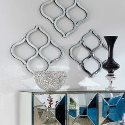 The Elizabeth Austin Lattice Abstract Wall Mirror – 27W x 29H in. is a uniquely designed piece that features beautiful curves and a classic pattern. This ogee-shaped, lattice patterned wall accent features interlocking mirrored pieces and an open silhouette that makes it highly decorative and eye-catching. D-rings attached to the back let you hang this accent piece right out of the box. Combine with additional pieces for a larger, more intricate pattern.
