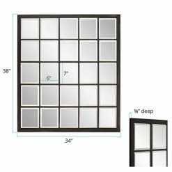 Visually open up your room with the reflective appeal of the Elizabeth Austin Superior Wall Mirror – 34W x 38H in.. This traditional rectangular wall mirror features a window pane design that can be installed vertically or horizontally. The antique black metal frame is richly highlighted with bronze, giving it a distressed, vintage feel.