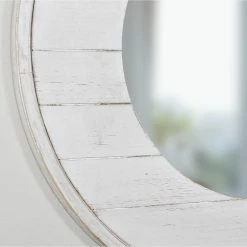 Brighten up your dΓ©cor with the FirsTime Ellison Shiplap Wall Mirror – 27 diam. in. This round wall mirror features a whitewashed finish and shiplap design for a charming rustic style.