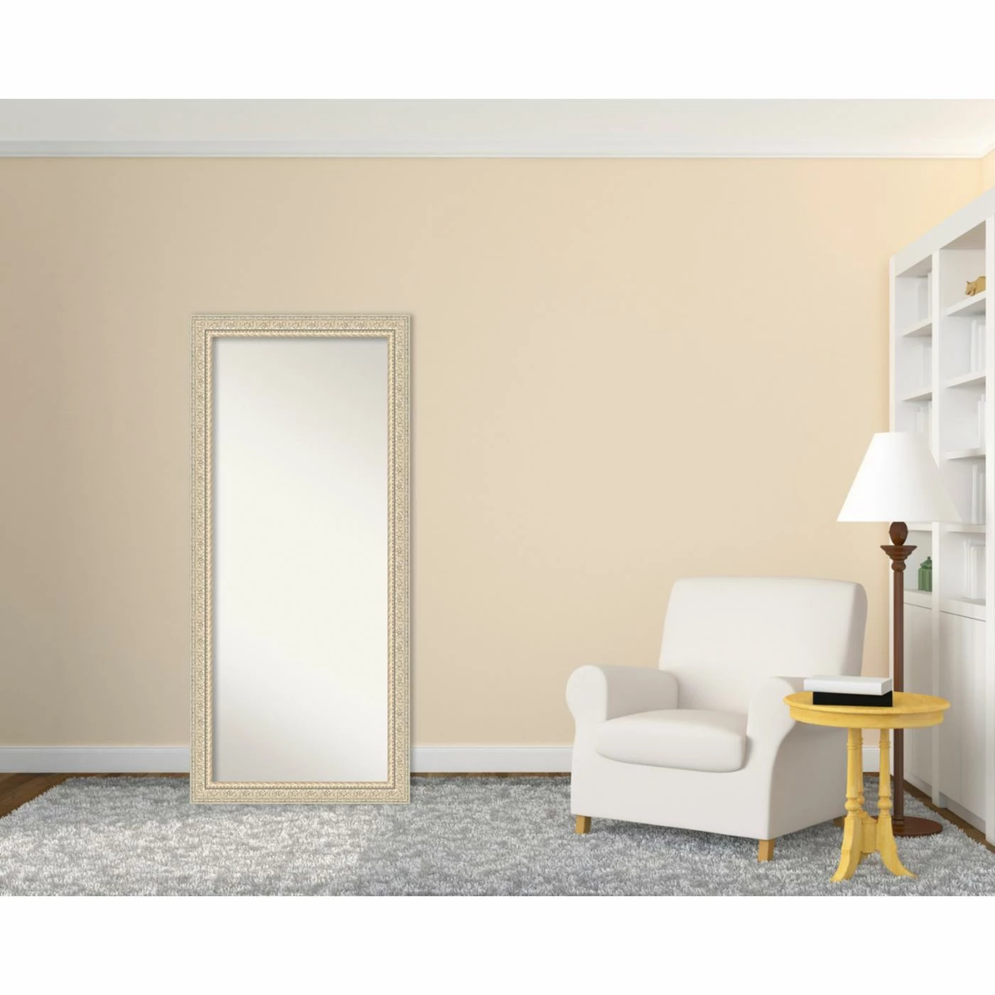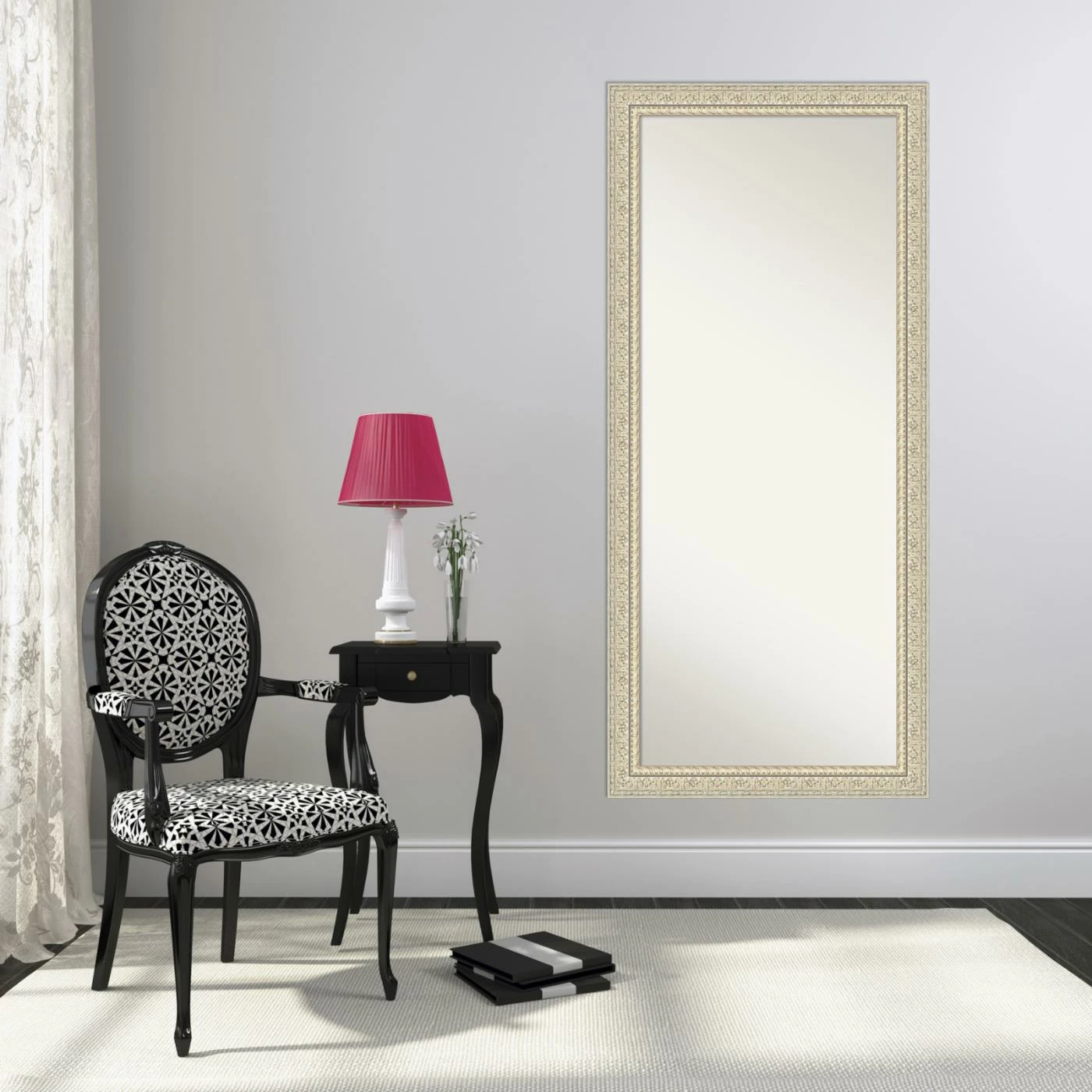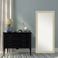 Timeless raised detailing on the Amanti Art Fair Baroque Cream Floor / Leaner Mirror – 30W x 66H in. is enhanced by a cream finish with red and brown patinas. Style it across from a grand window or impressive wall art display to let this large leaning beauty reflect a view. This handcrafted mirror was made in a small custom art and frame shop located in Wisconsin and comes ready to hang or lean.