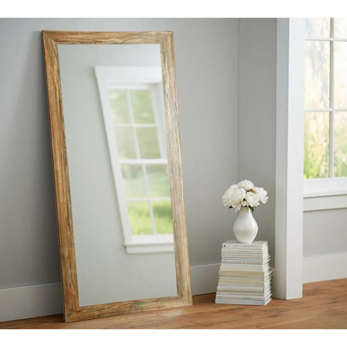 Play with light and space with the BrandtWorks Blonde Barnwood Floor Mirror. Try this floor mirror throughout your home to create the appearance of added space or reflect your favorite home styles. A dappled blond finish features pale brown and deep golden tones over a wooden frame.