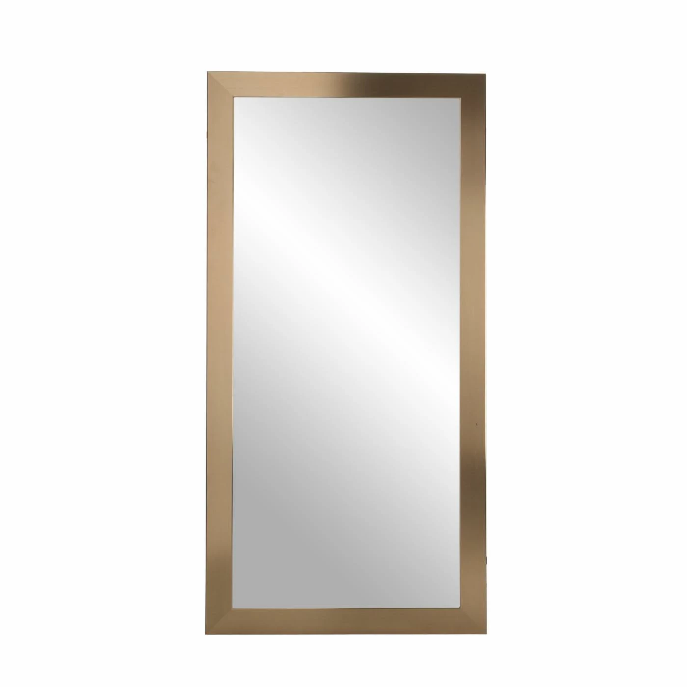 The BrandtWorks Contemporary Champagne Rectangular Full Length Mirror dazzles on your walls with its sleek champagne frame. This wood and glass mirror is built to last, and it arrives ready to hang on your walls thanks to pre-installed hooks.