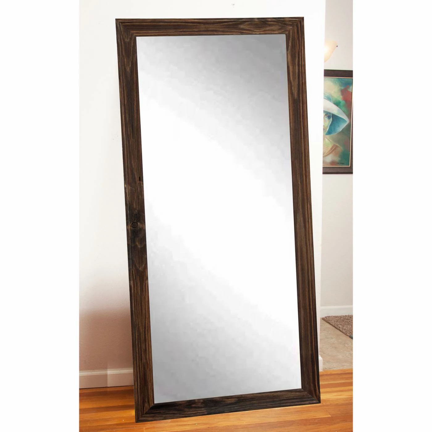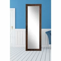 The BrandtWorks Designers Choice Leaning Floor Mirror – Espresso enhances your home with a wide wood frame finished in a warm espresso so the gorgeous wood grain shines through. This full-body length floor mirror leans against the wall, or it can be hung up horizontally or vertically with the included hardware. Add it to your favorite space to enjoy its rich, rustic beauty.