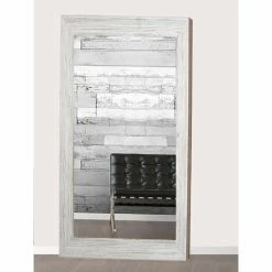 The BrandtWorks Designers Choice Leaning Floor Mirror – White creates a seaside vibe in your space with its graceful wood frame in a comforting coastal white hue. This unique mirror leans up against the wall for instant setup, or you can mount it directly to the wall with the hanging hardware. Place it horizontally or vertically to give your home the perfect form of reflection.