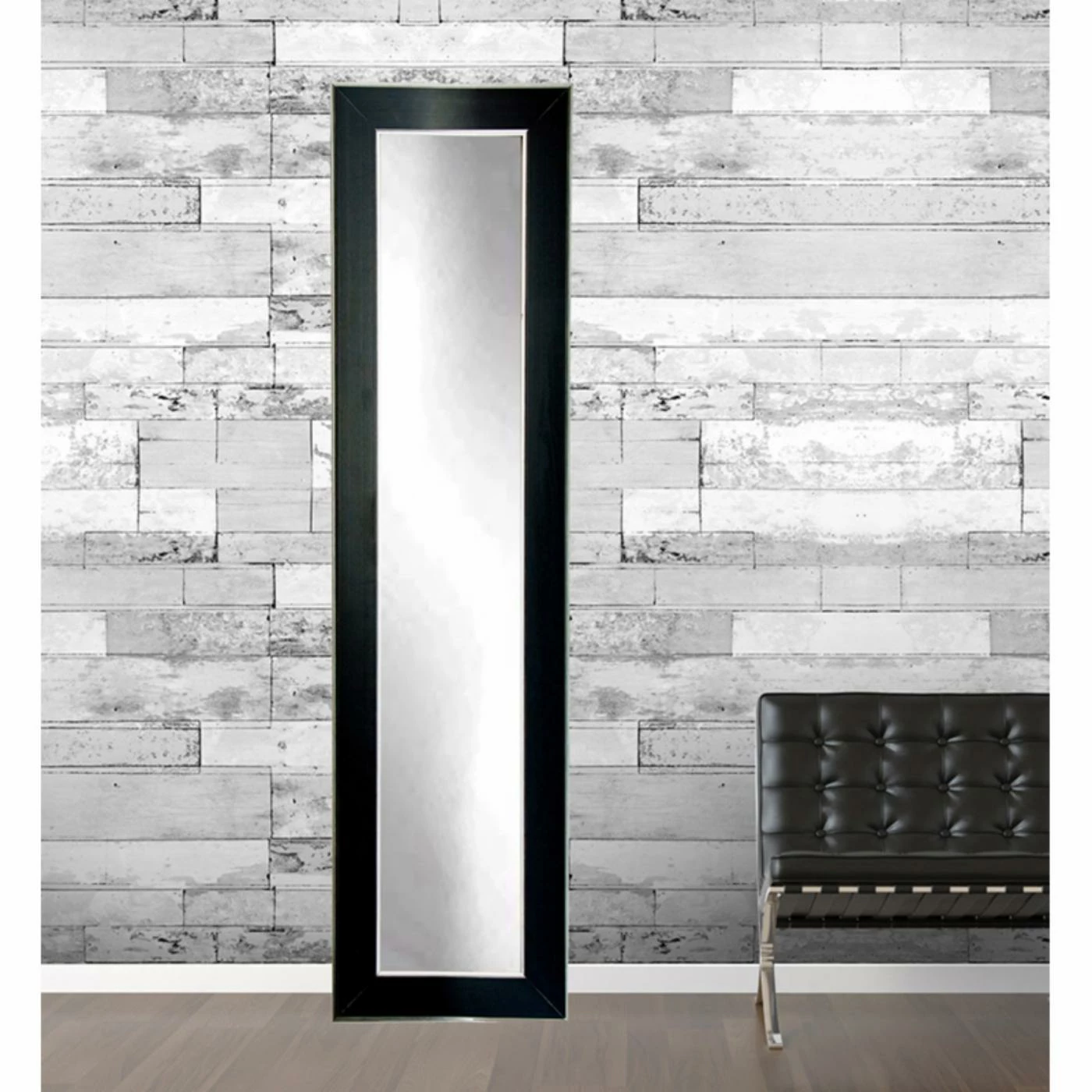 The BrandtWorks Designers Choice Leaning Floor Mirror features a unique design that lets you lean it against a wall to create an instant room upgrade. This bold floor mirror has a thick black frame, and sleek silver trim surrounds both the inner and outer edges to make it pop in your space. Hanging hardware is included in case you prefer to mount it to the wall.