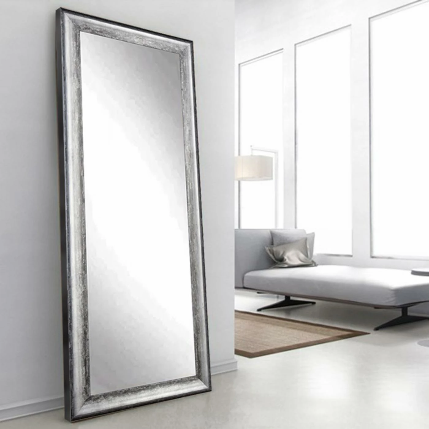 Get a great look at the dayโs outfit in the full-length BrandtWorks Midnight Silver Floor Mirror. This elegant floor mirror features a weathered silver-toned frame that adds to its vintage allure. Lean it against the wall or hang it vertically or horizontally.