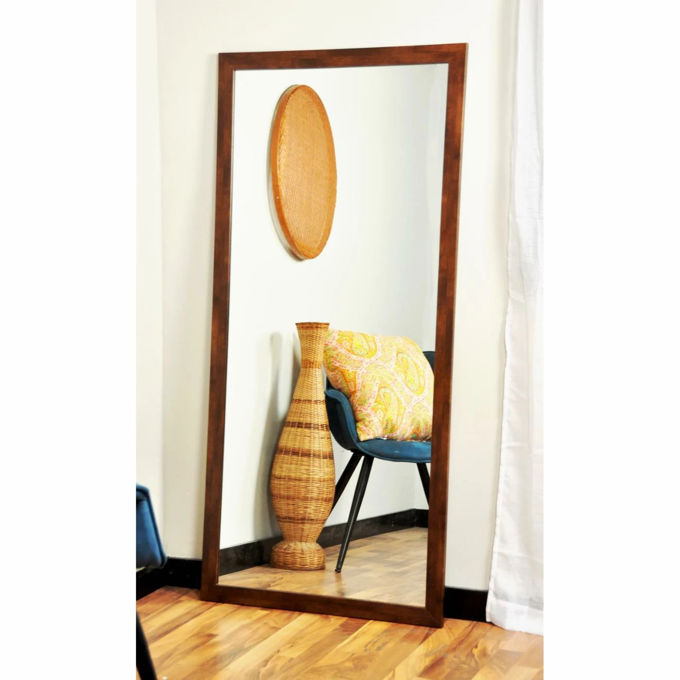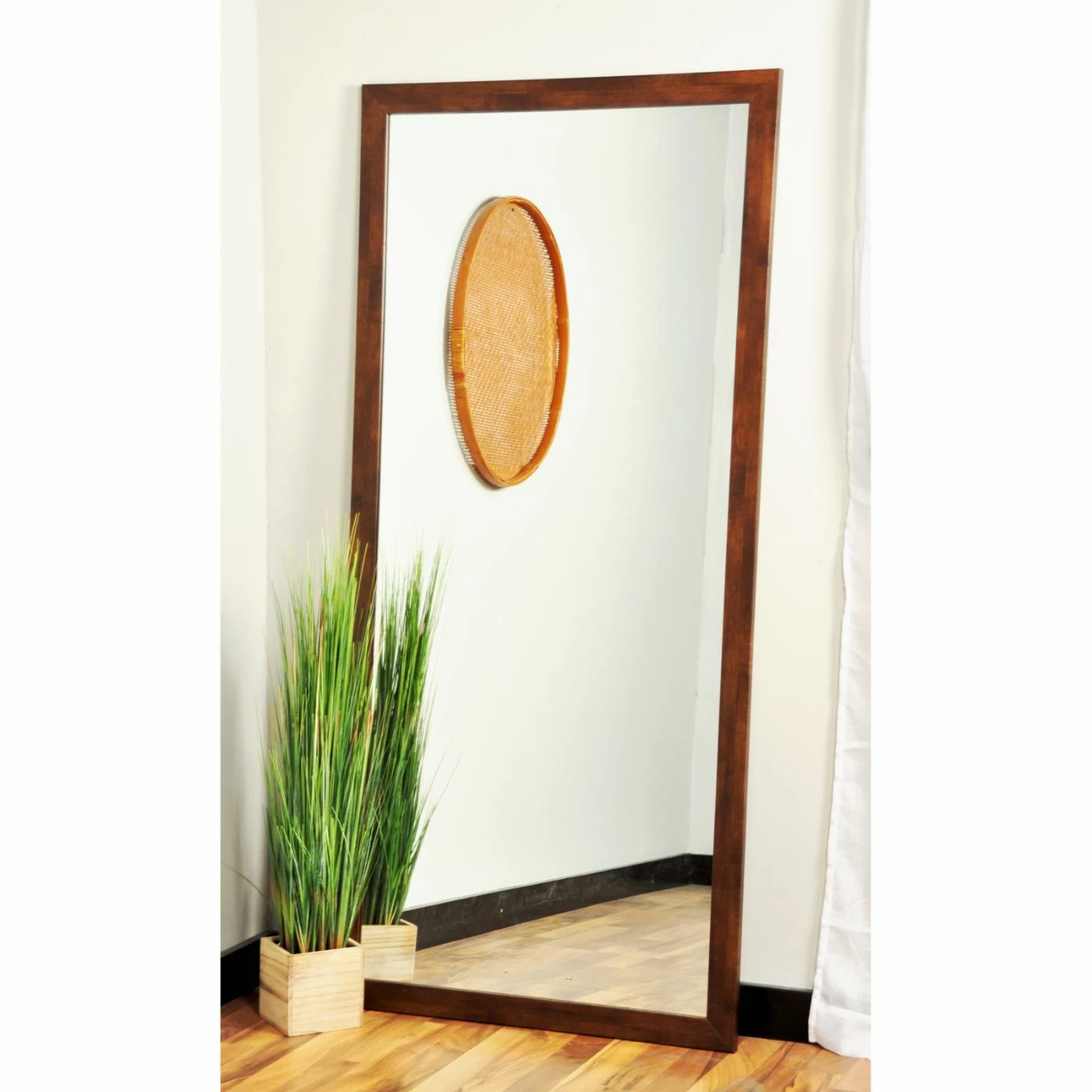 Go for quality with the BrandtWorks Mocha Brown Mid Century Floor Mirror, because a wall mirror is a dΓ©cor piece that can adapt to suit your needs no matter how much your style and setting may change. This one is crafted to exacting standards with quality engineered wood which resists warping over time. The 2-inch frame has a flat face and a rich mocha brown finish. Lean this mirror against the wall for a full view while dressing, or use the pre-attached rings on the back for vertical or horizontal hanging.