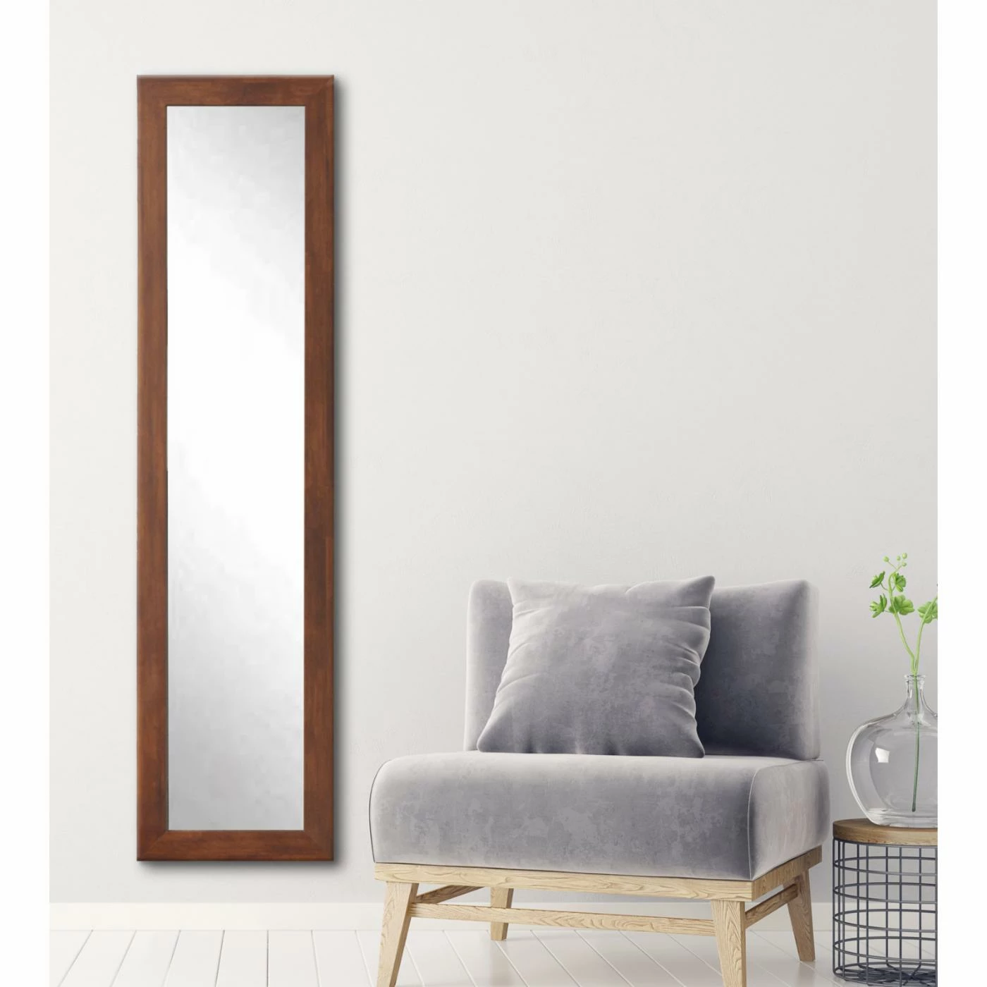 The BrandtWorks Modern Mocha Brown Slim Floor Mirror is a stately addition to a room. The mirror brightens your space and makes it feel larger. The rustic wood frame is finished in a rich mocha brown. Hang this mirror vertically or horizontally, or simply lean it against the wall.