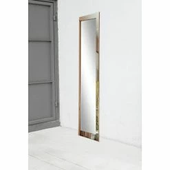 The BrandtWorks Modern Style Chrome Leaning Floor Mirror is undoubtedly sleek thanks to its mirror-like chrome finished frame. This durable floor mirror leans against the wall to give you a full-body sized reflection. Use the included mounting hardware to hang it up for added versatility.
