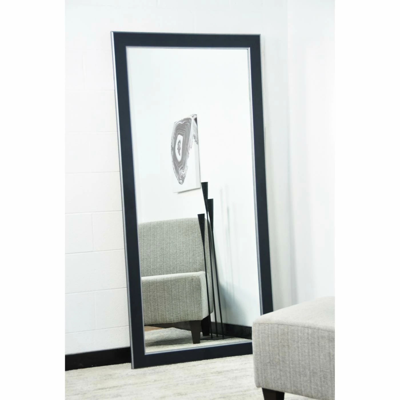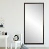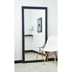Accent an ornate space with the simple yet impactful BrandtWorks Modern Twist Tall Vanity Floor Mirror – 32W x 65.5H in.. A multifaceted piece, this mirror provides definition with its black matte-style frame and textured border, yet at once opens up a room with light and reflection. With its tall, slim form, this mirror is ideal for a bedroom or living room, and you can hang it or lean it against the wall for a full dressing view. Hanging hardware is included.