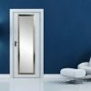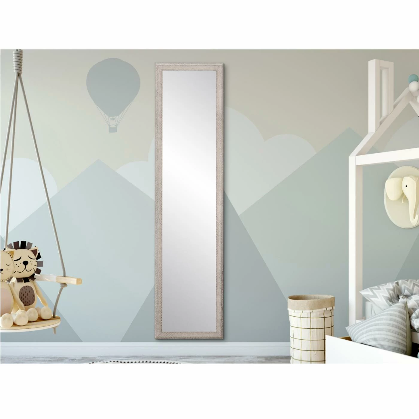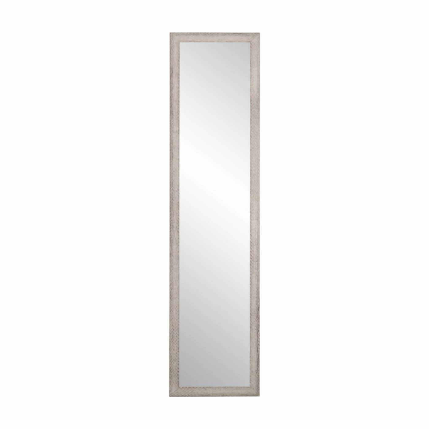 The BrandtWorks Rectangular Gray and White Slim Floor Mirror showcases a woodgrain texture that’s accented by its white and gray finish. The frame of this floor mirror is crafted from solid wood. Outfitted with hanging hardware, this mirror arrives ready for wall mounting or can be rested on the floor against the wall.